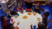 Le dernier jour d’école, nous offrons traditionnellement le goûter aux enfants. Brioche, jus de fruits et clémentines pour tout le monde.