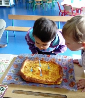 Ce dernier mercredi d’avril, nous avons fêté quelques anniversaires. Léon a eu 4 ans et Tom et Charlotte 3 ans. Ils ont préparé un far, avec l’aide d’Anita.