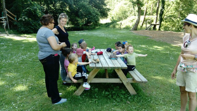 Ensuite, nous sommes allés visiter le site pendant que Elisabeth s’essayait à son tour avec sa classe aux joie de la grimpette. Nous avons trouvé un labyrinthe à Marsupilami ! En évitant de se perdre dans le dédale de la forêt, il fallait être attentif à trouver des oeufs de marsupilami accrochés aux arbres. Nous avons trouvé neuf oeufs.