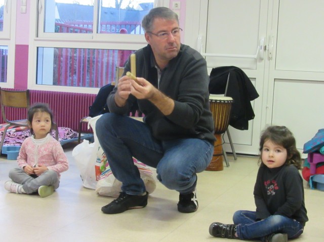 Olivier nous a ensuite présenté les premières petites percussions et nous avons pu nous y essayer.