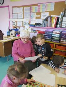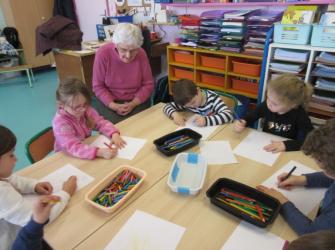 Mardi 19 mars, après la récréation, Suzanne est venue nous lire 2 livres. Pour la remercier, nous avons tous fait un dessin …