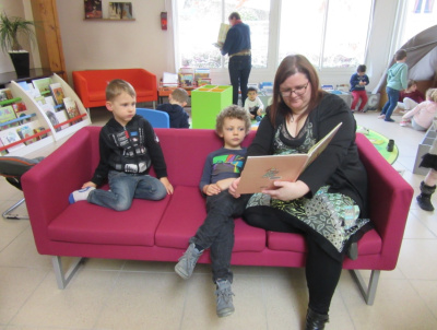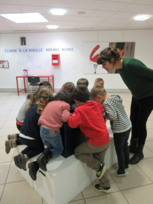 Un groupe est allé dans la médiathèque lire et choisir des livres pendant que l’autre groupe visitait l’exposition avec Cécile, l’animatrice de la médiathèque. Mais tiens ! Qu’est-il donc arrivé à M. Souchi ?