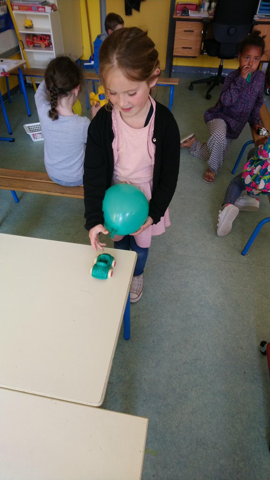 Nous avons ensuite essayer de faire avancer une voiture en se servant de la force de l’air. Soit en poussant la voiture avec l’air contenu dans un ballon